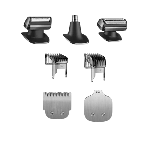 ماشین اصلاح مو سر شیائومی Grooming Kit Pro دارای 5 سری (یک سری روی خود دستگاه) برای قسمت های مختلف بدن است. این 5 سری شامل سری اصلاح مو و ریش (سری U شکل که روی خود ماشین اصلاح است)، سری موزن بینی و گوش، سری خط زن، سری مخصوص ریش و سری مخصوص بدن است.