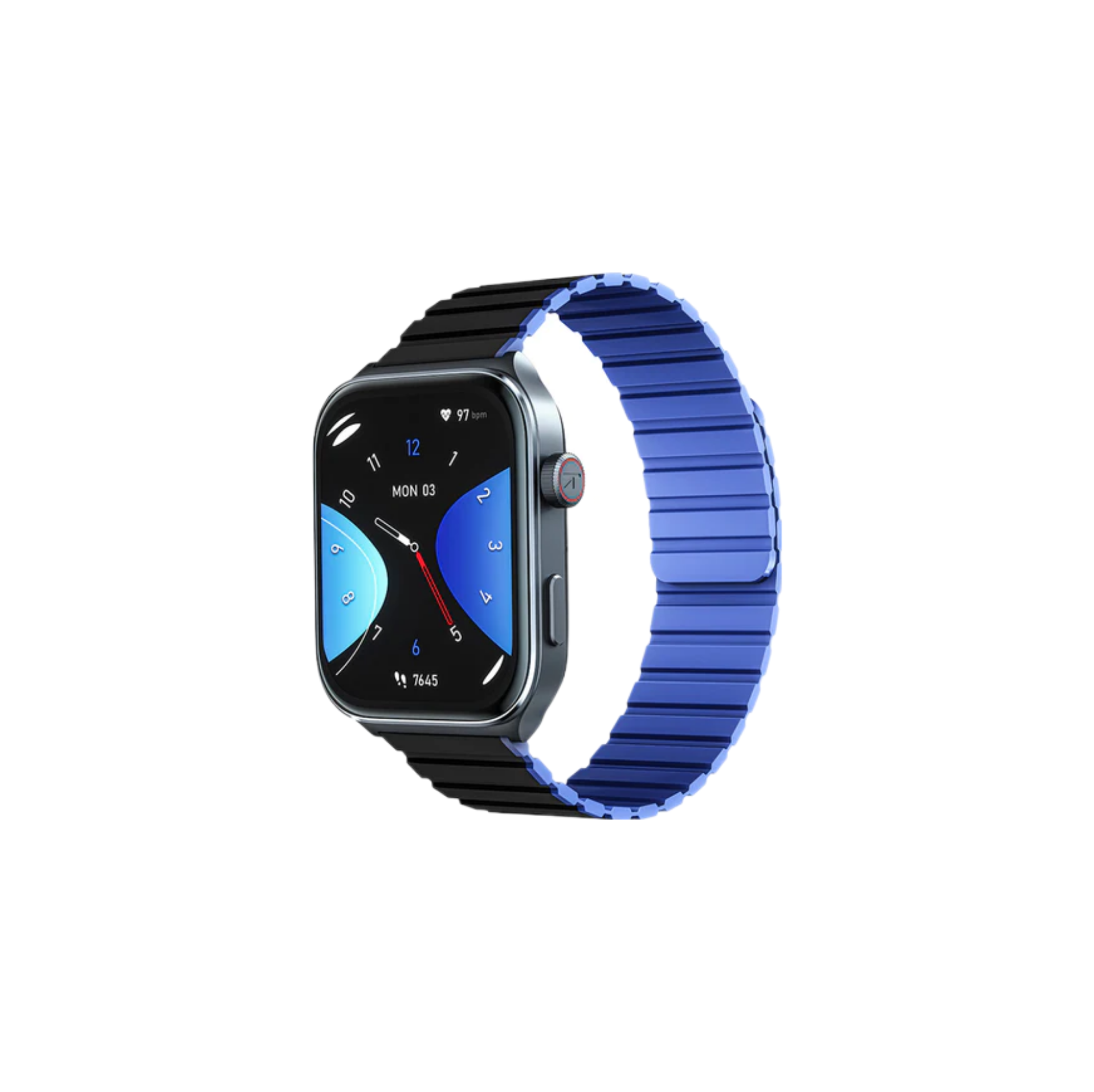 دو دکمه فیزیکی در سمت راست کیس وجود دارد. این ساعت هوشمند دارای واچ فیس های مختلف است و در رنگ های مشکی و آبی موجود است.