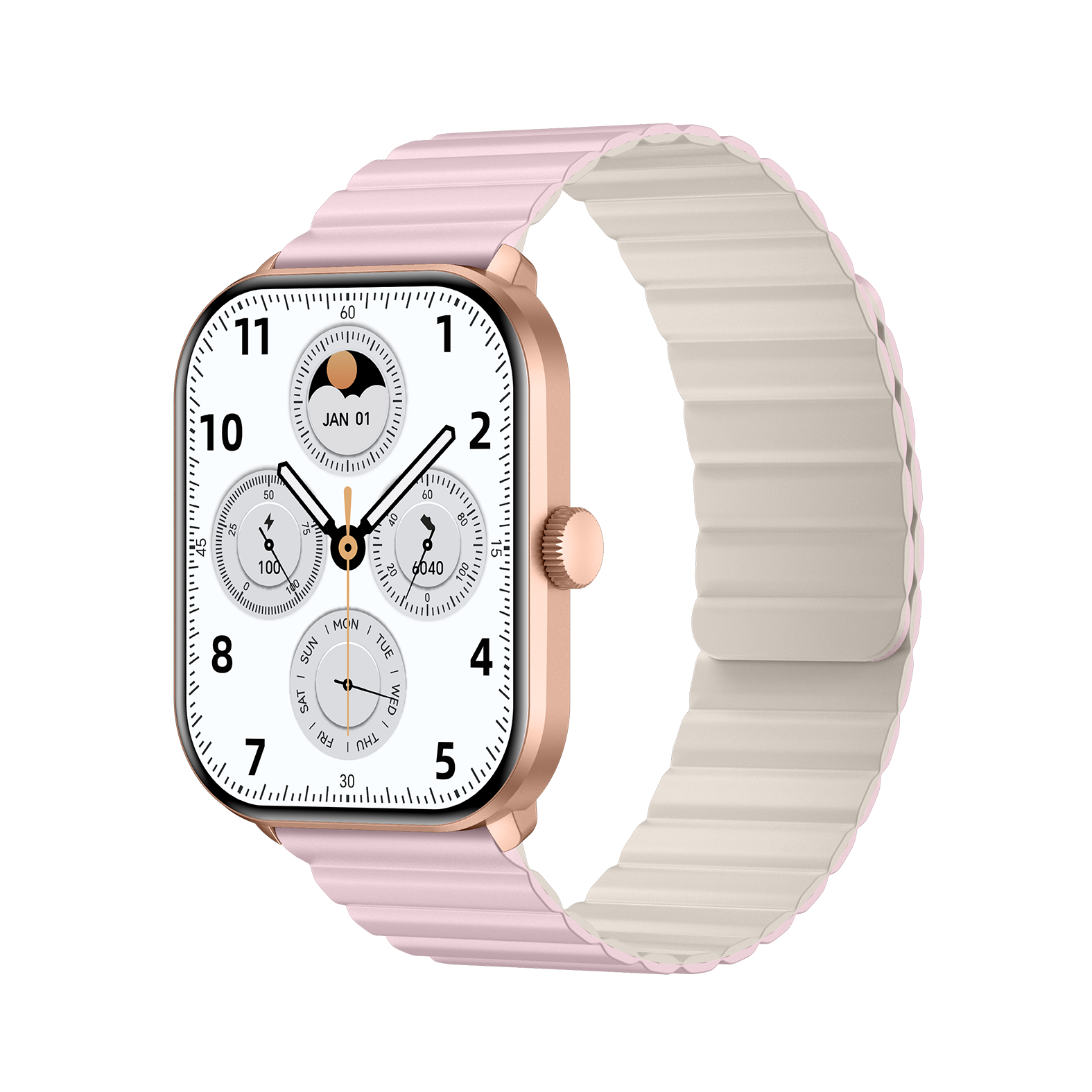 - بدنه رزگلد با بندهای سیلیکون مگنت صورتی-کرم و سیلیکونی صورتی