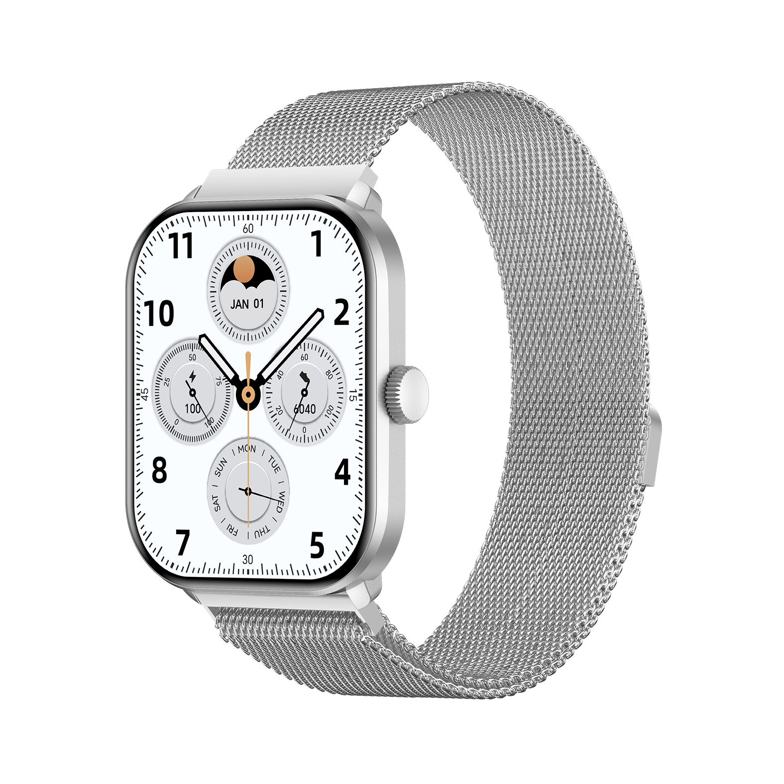 - بدنه نقرهای با بندهای استیل مگنت نقره ای و سیلیکونی خاکستری