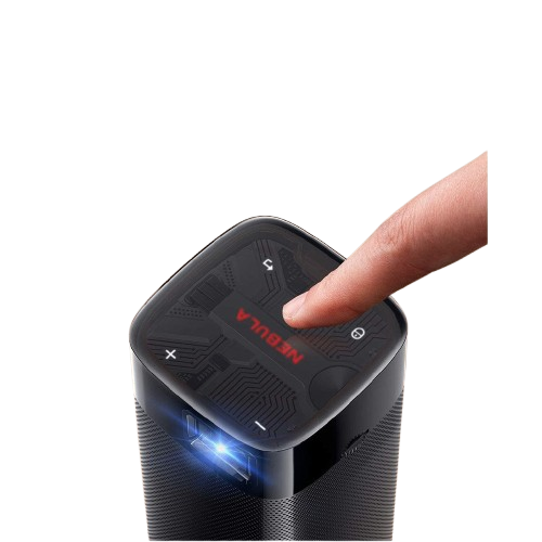 در قسمت بالایی این پروژکتور کلیدهای کنترل بصورت لمسی قرار گرفته اند که می توانید از طریق آن ها برخی موارد مثل صدا را کنترل کنید. همچنین با تپ کردن کلیدی که روی آن قرار گرفته می توانید قسمت مربعی بالا را به یک تاچ پد برای جابجا شدن بین منوها از این بخش استفاده کنید