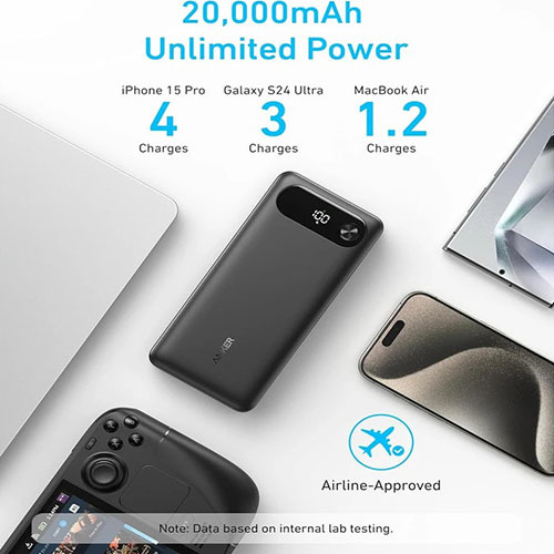 • ظرفیت 20000 میلی‌آمپر ساعت برای شارژ چندین بار گوشی‌های هوشمند