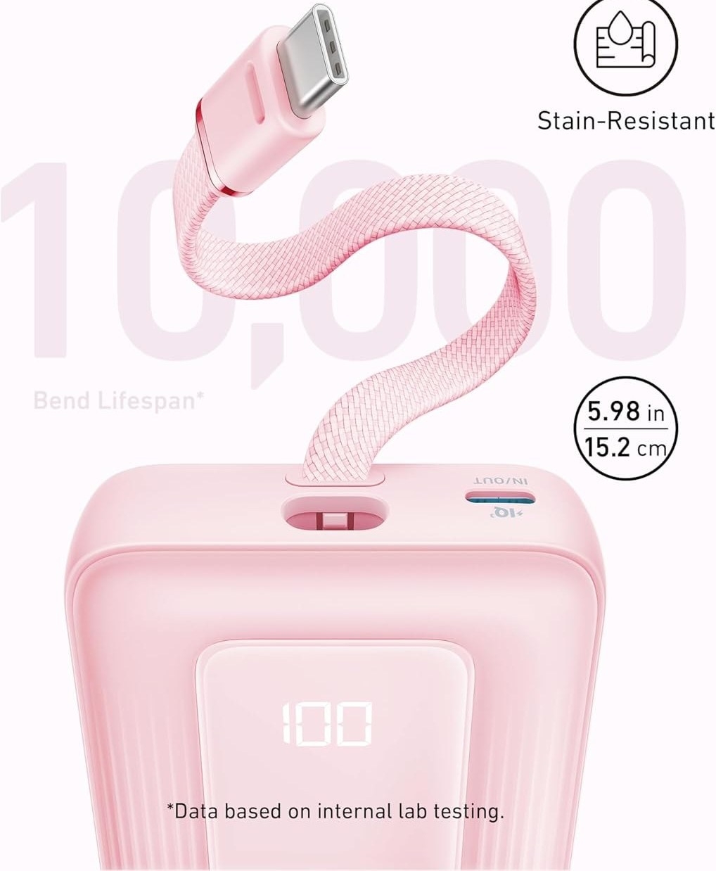 یکی از ویژگیهای برجسته این پاوربانک، طراحی مقاوم آن است. ابعاد آن مناسب است و به راحتی در کیف یا جیب شما جای میگیرد. علاوه بر این، کابل USB-C یکپارچه آن مقاوم در برابر خمیدگی و آسیبهای فیزیکی است، که آن را برای استفاده طولانی مدت مناسب میسازد.